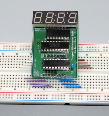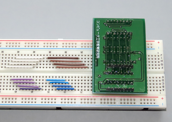 - ブレッドボードに差し込んで利用します.これでコンパクトに7セグメントLEDを使用できます.